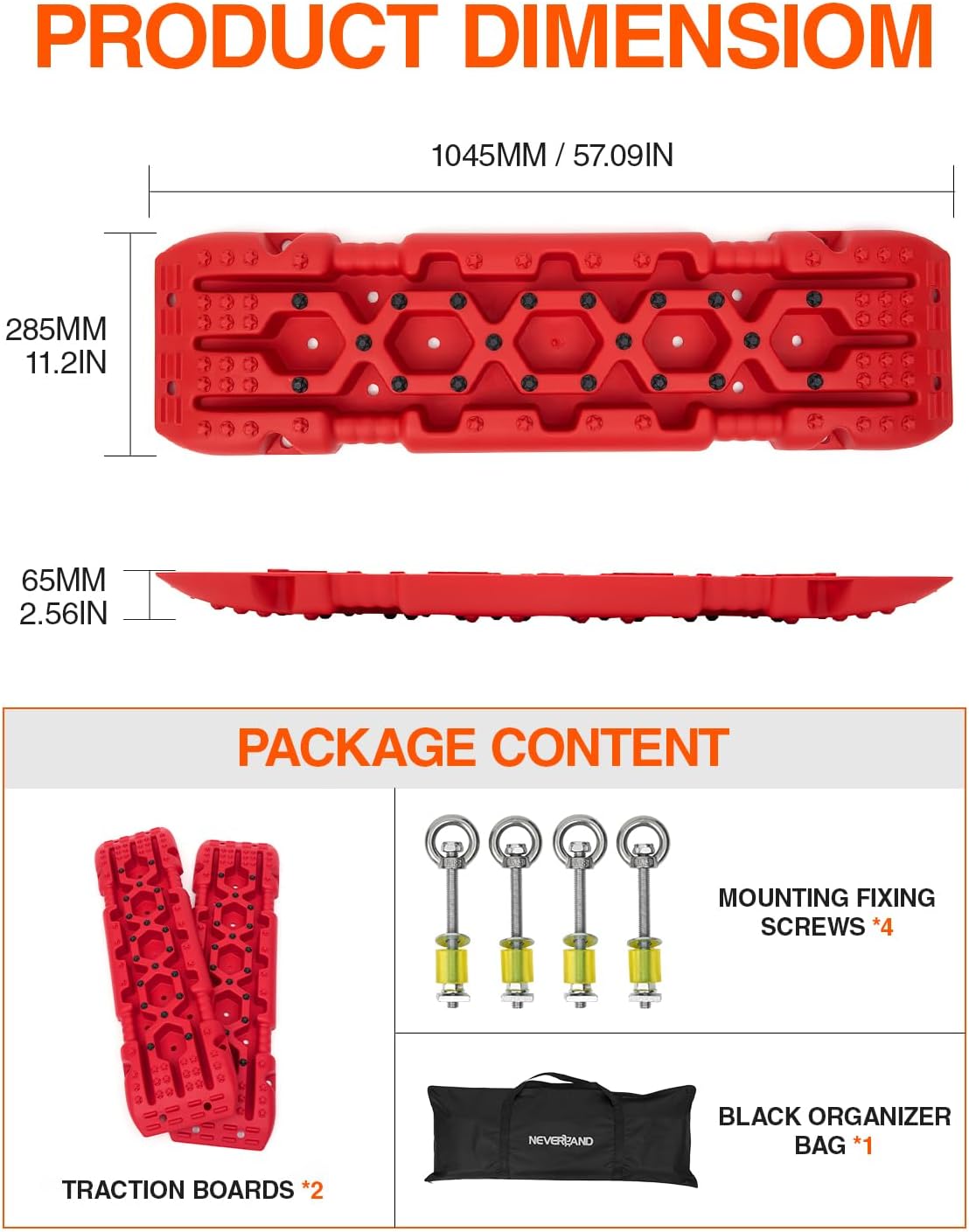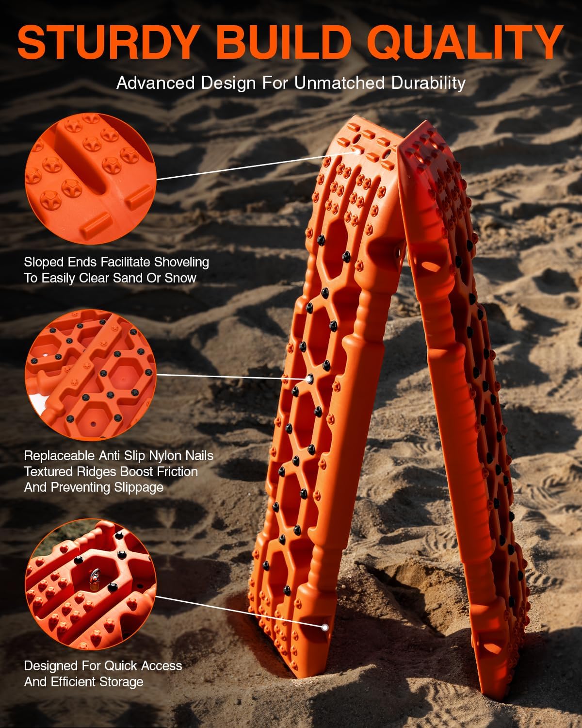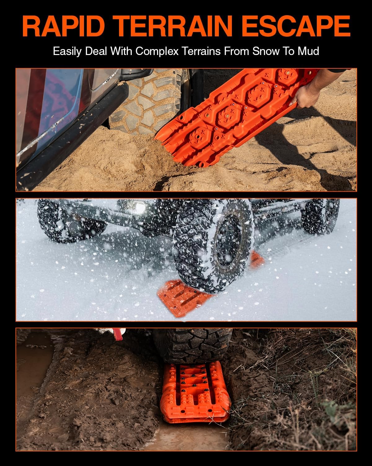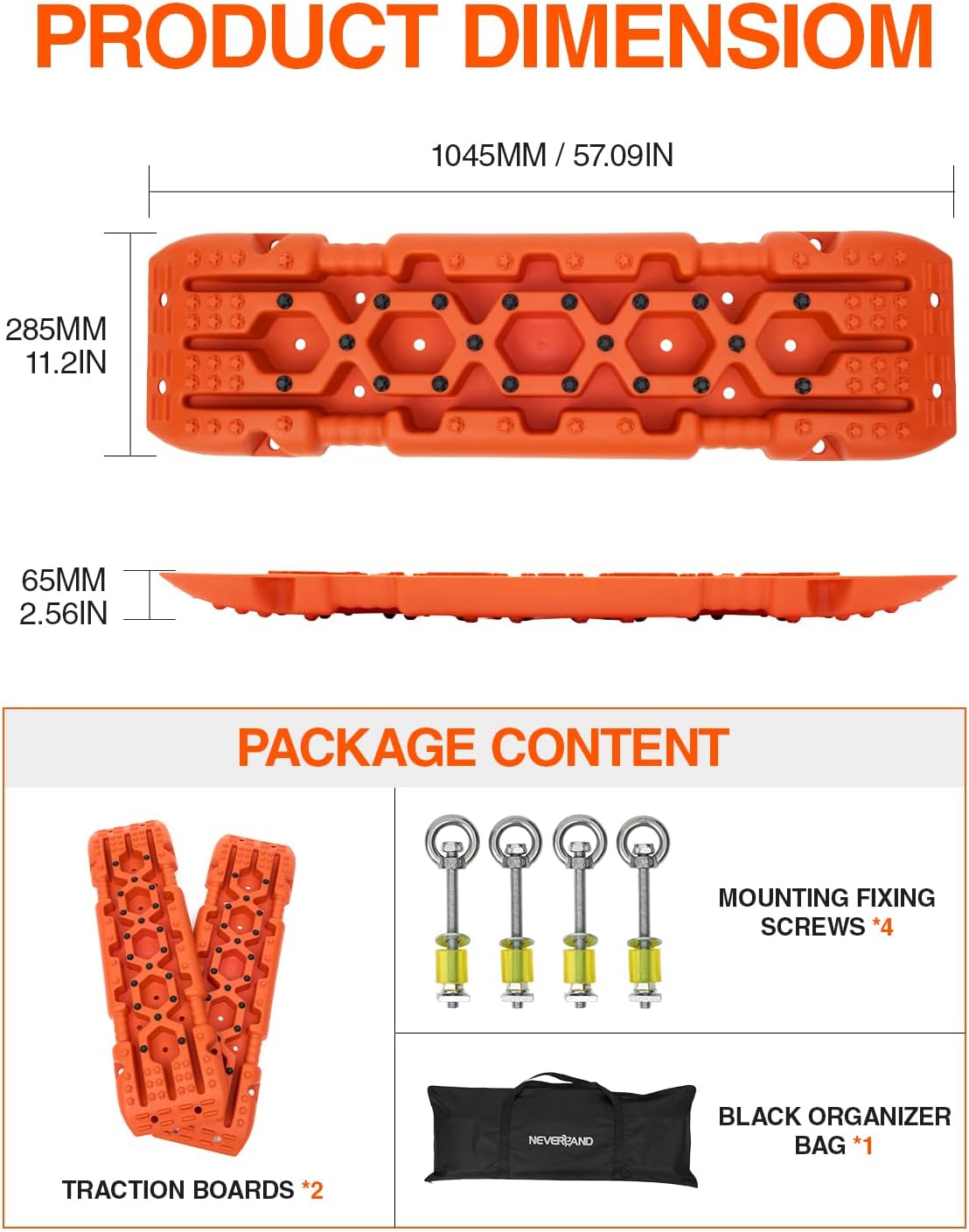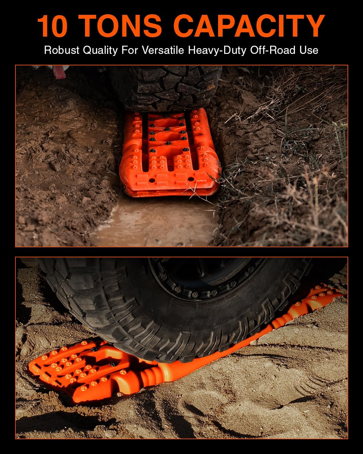 NEVERLAND Traction Boards Recovery Tracks - Traction Boards Offroad Recovery Tracks for Sand Mud Snow, Recovery Boards for 4X4 Vehicle RV Truck Jeep SUV Emergency Tire Traction (Orange)