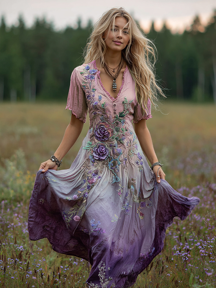 Women's Northern Celtic Knot Phoenix Totem Ombre Linen Maxi Dress