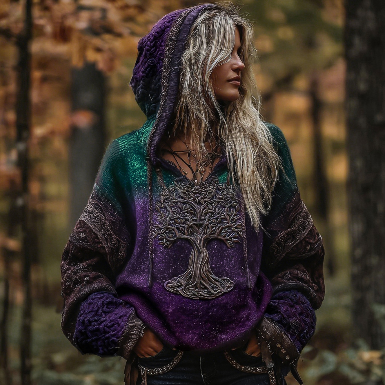 Women's Vintage Viking Tree Of Life Art Gradient Comfort Hoodie