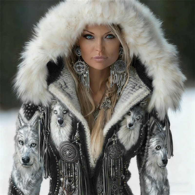 Vintage Western Wolf Turquoise Beaded Tassels Fur Trim Hooded Cardigan