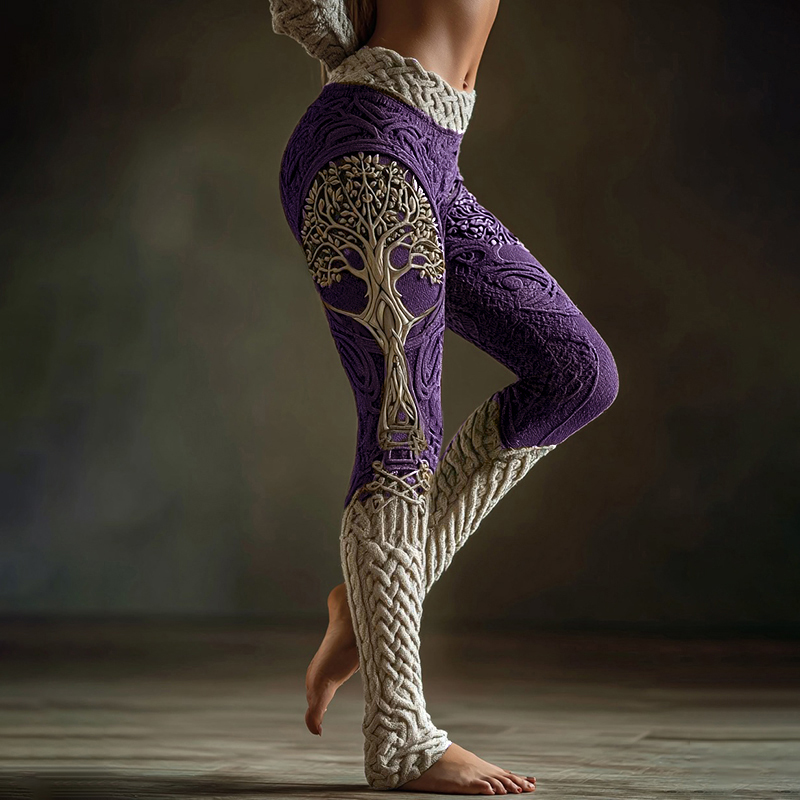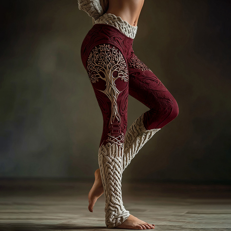 Vintage Viking Tree Of Life Celtic Knot Art Knit Cozy Leggings