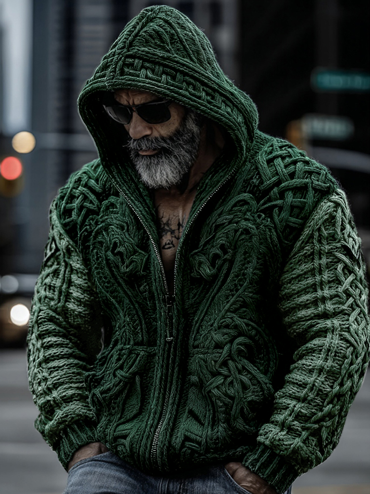 Men's Celtic Knot Chunky Knit Zip-up Hooded Sweater